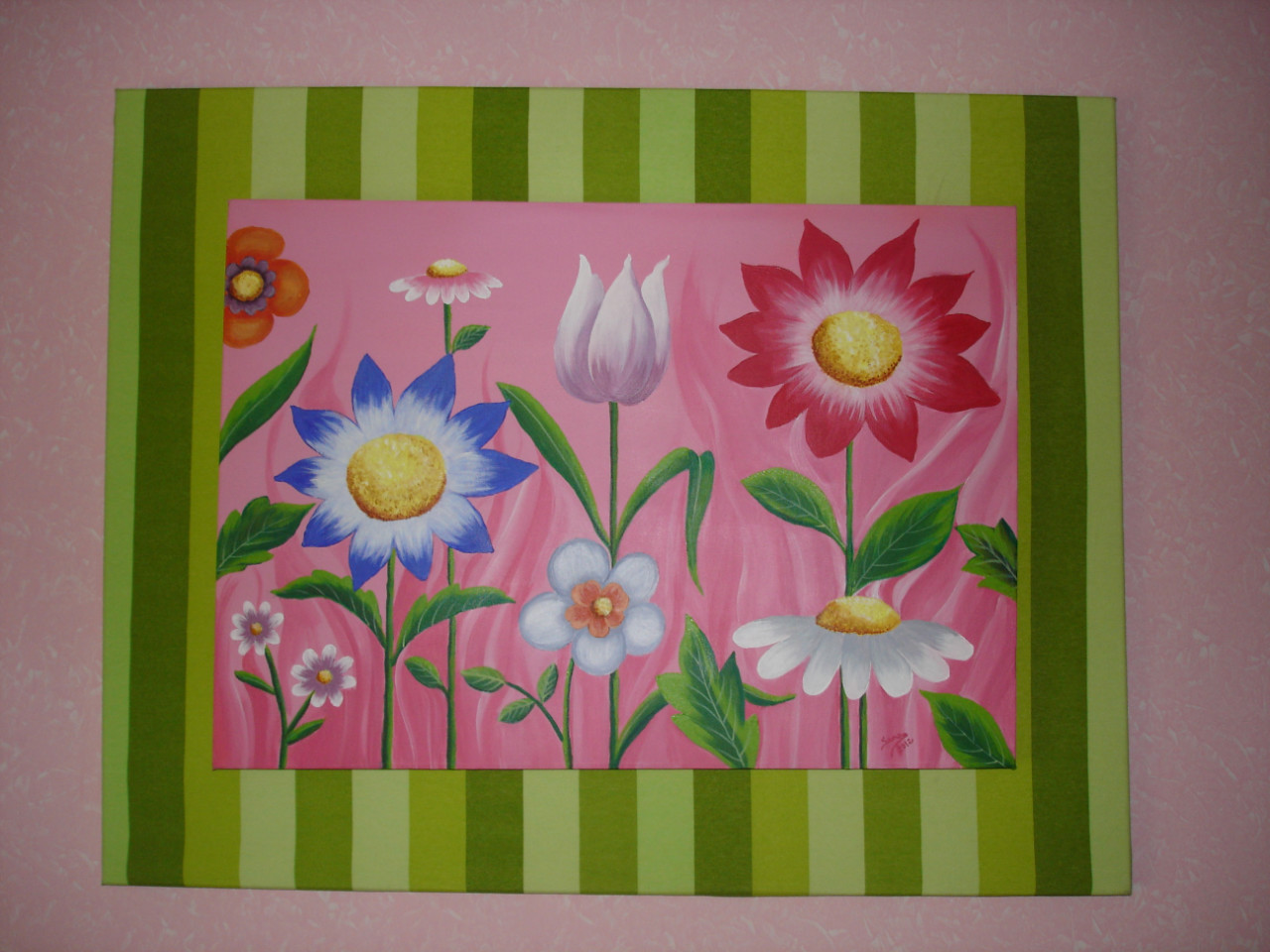 Quadro pintado em acrílico, colocado numa segunda tela forrada com tecido...